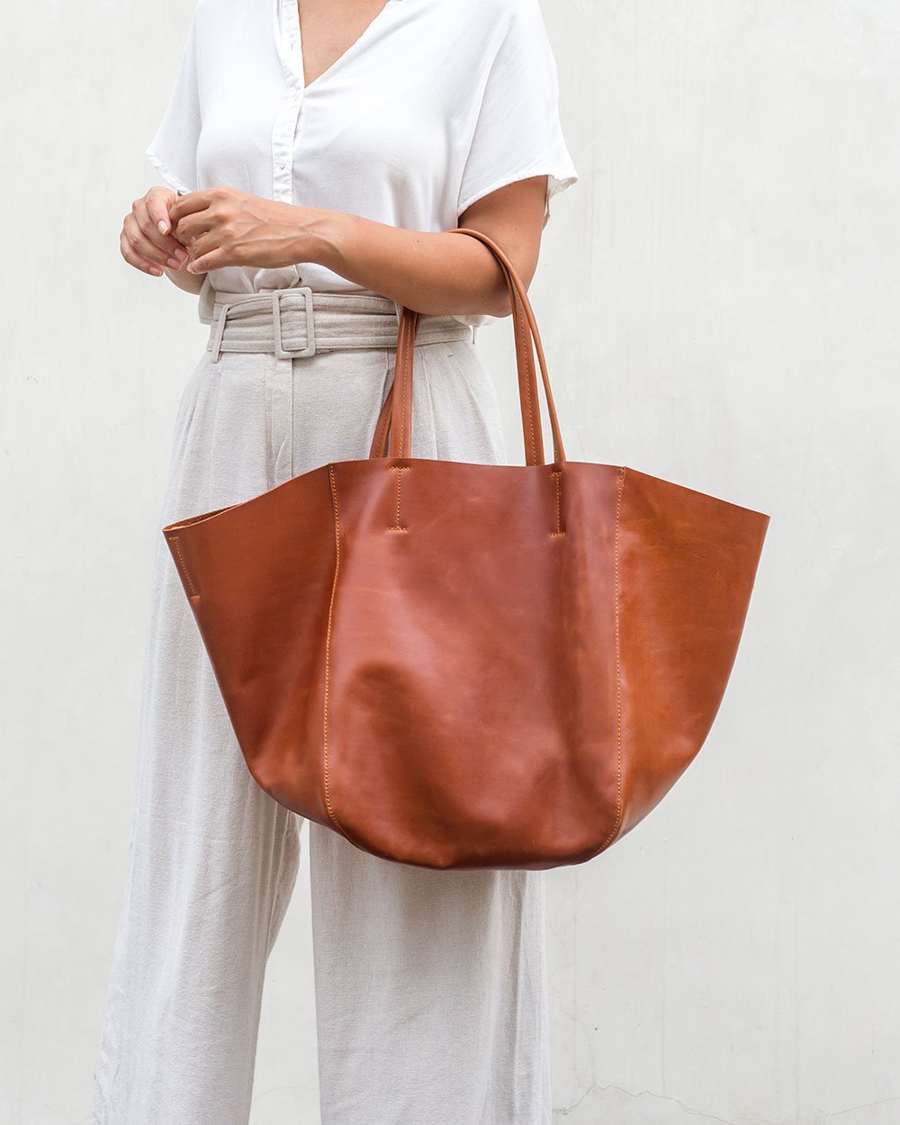 Your everyday leather tote bag with a little extra style and versatility. Hand made from 100% genuine cowhide leather. Our large tote is designed with simple, clean lines that will complete any outfit.